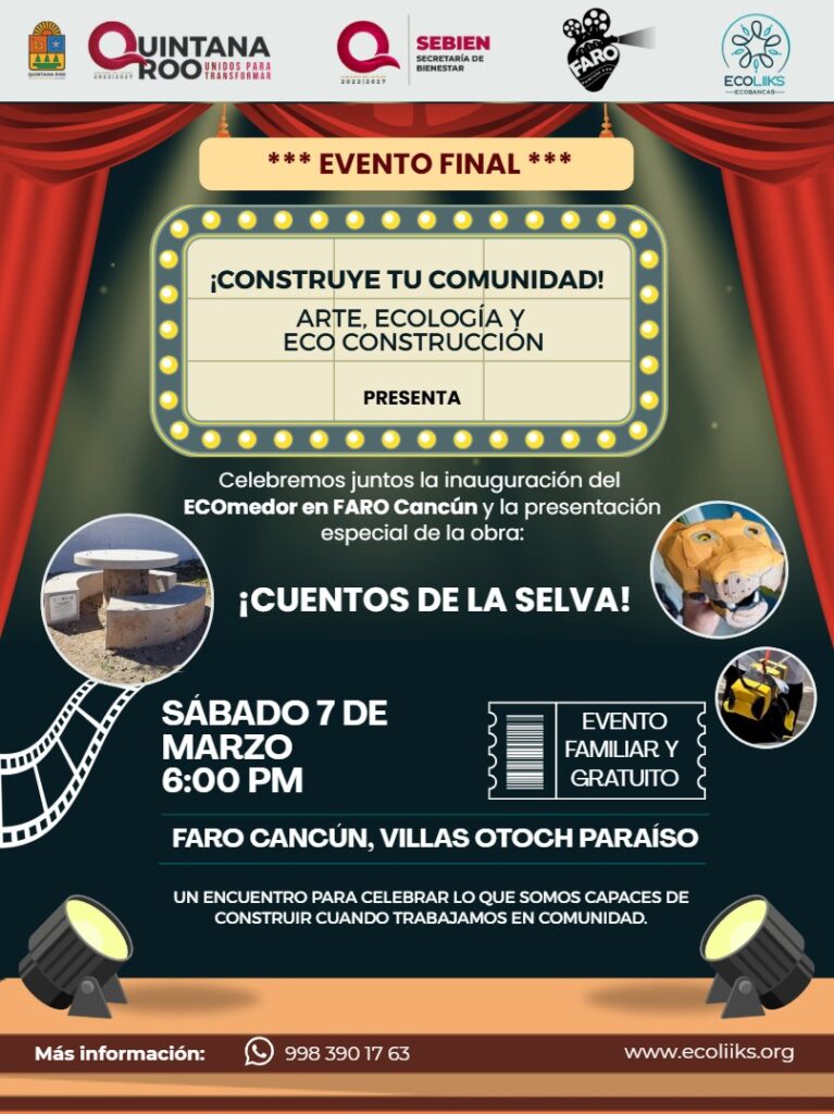 En esta celebración inauguraremos el ECOmedor Ecoliiks, una obra comunitaria construida con ecoladrillos que transforma residuos no reciclables en infraestructura sustentable para la comunidad. Este espacio simboliza el trabajo en equipo, la educación ambiental y la participación ciudadana en Cancún.